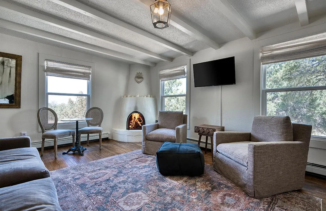 Tesuque Outpost Casita E & F Top Views está amueblada con sofá y escritorio, así como con TV de pantalla plana con canales vía satélite. Los cuartos de baño disponen de inodoro separado y ducha, secadores de pelo y albornoces.